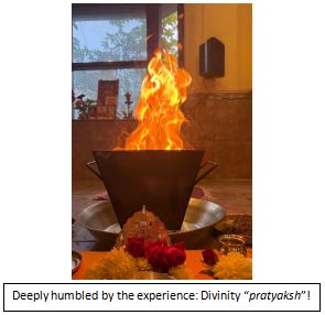 The whole purpose of offering oblations is to minimize the ego by sacrificing it in the Holy fire of Homam. This year we were blessed with the appearance of Sacred symbol 'Aum' in the Holy Fire of Homam.